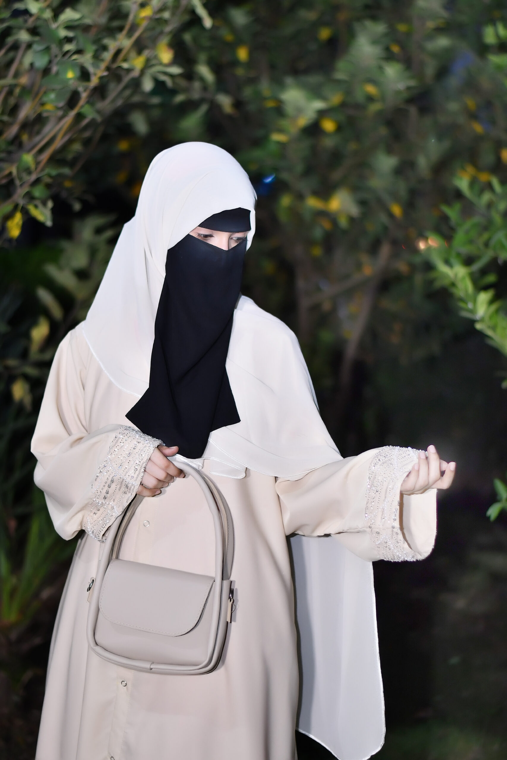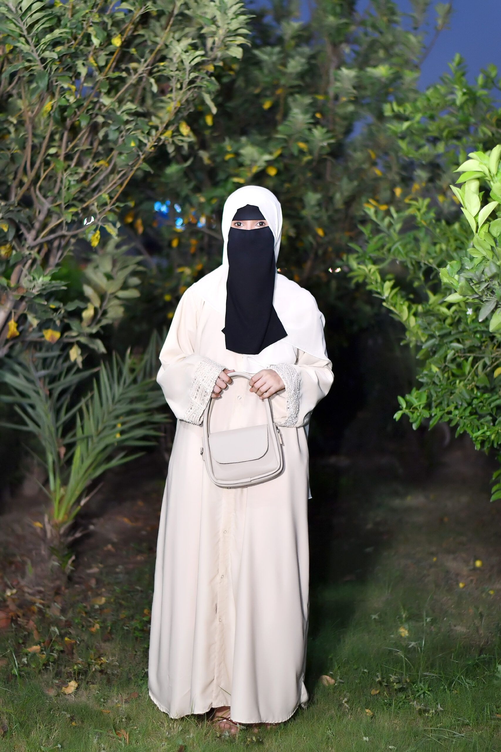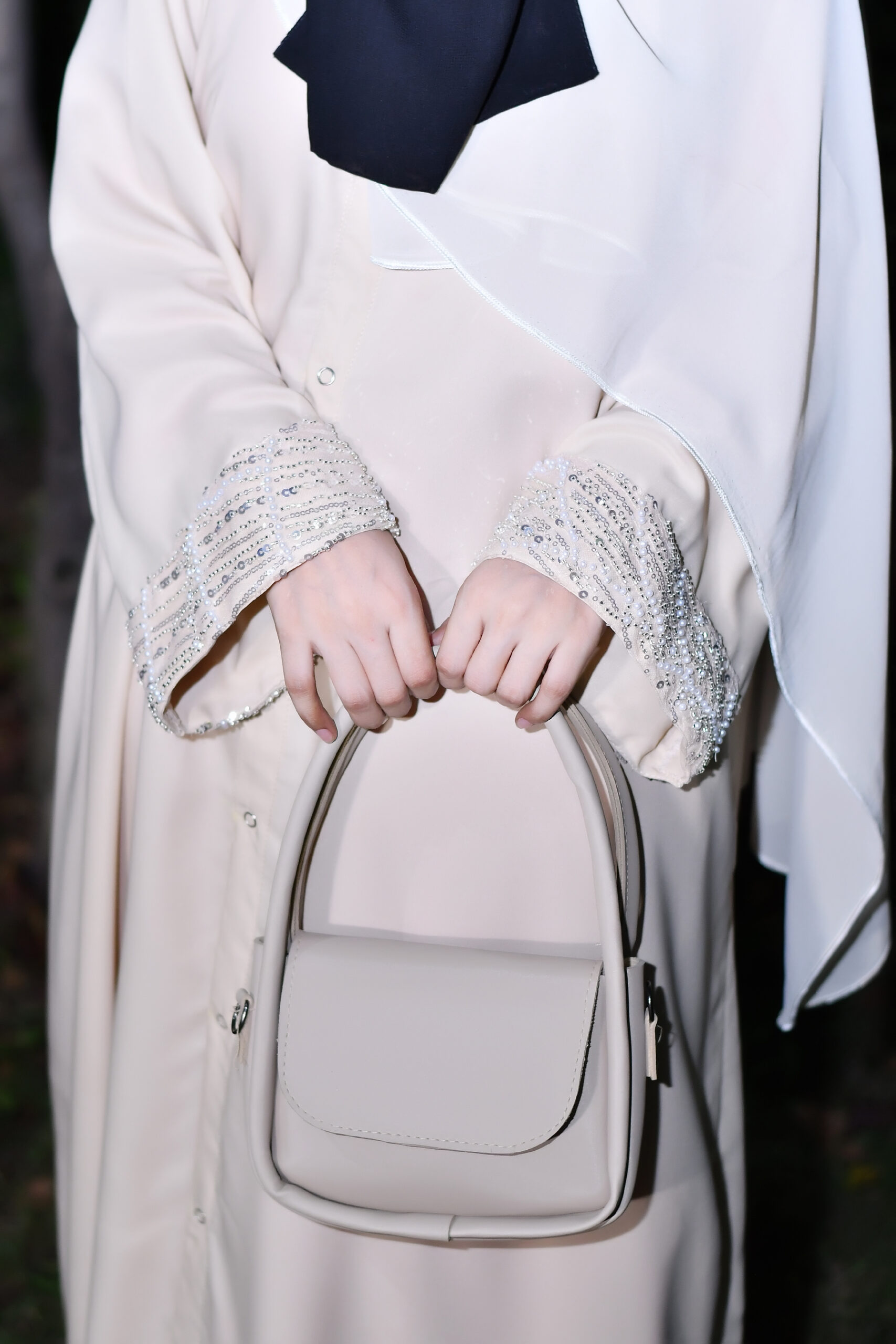 Our abayas are crafted from the finest Nida fabric, ensuring a soft, breathable feel and an elegant drape that lasts all day.